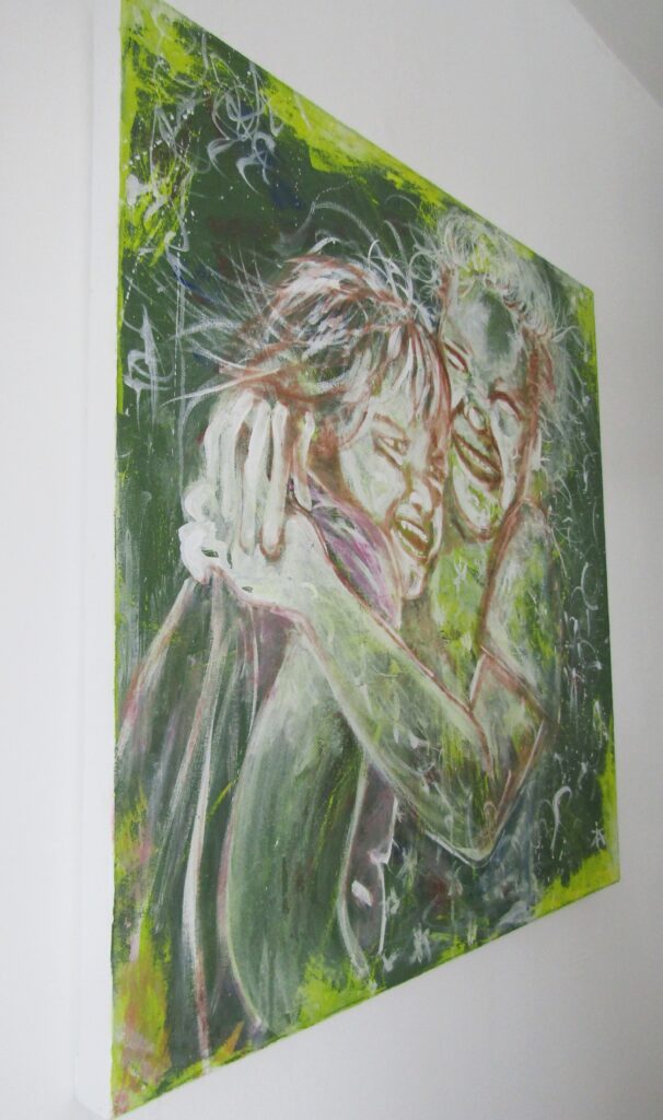 Œuvre encadrée par l’artiste. les couleurs ont été fabriquées avec des pigments naturels et synthétiques, par l’artiste également. Toile de coton de bonne qualité. Ce tableau est vendu avec son certificat d’authenticité et la signature de l’auteur I.Z.A en bas à droite. il a été réalisé en 2024.