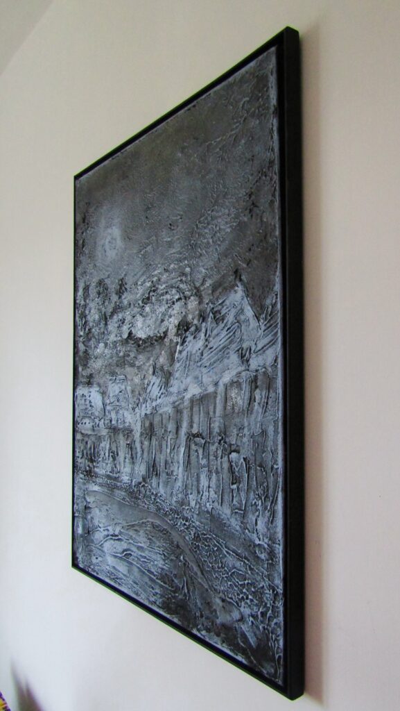« Ma démarche repose sur le dialogue entre la main et la rugosité du support. Par une succession de brossages aériens, je dépose des voiles chromatiques qui viennent accrocher la lumière sur les sommets du relief. Ce jeu de sédimentation visuelle s’arrête lorsque l’œuvre atteint son point de rupture : ce moment de grâce où la couleur ne fait plus qu’un avec la structure. »