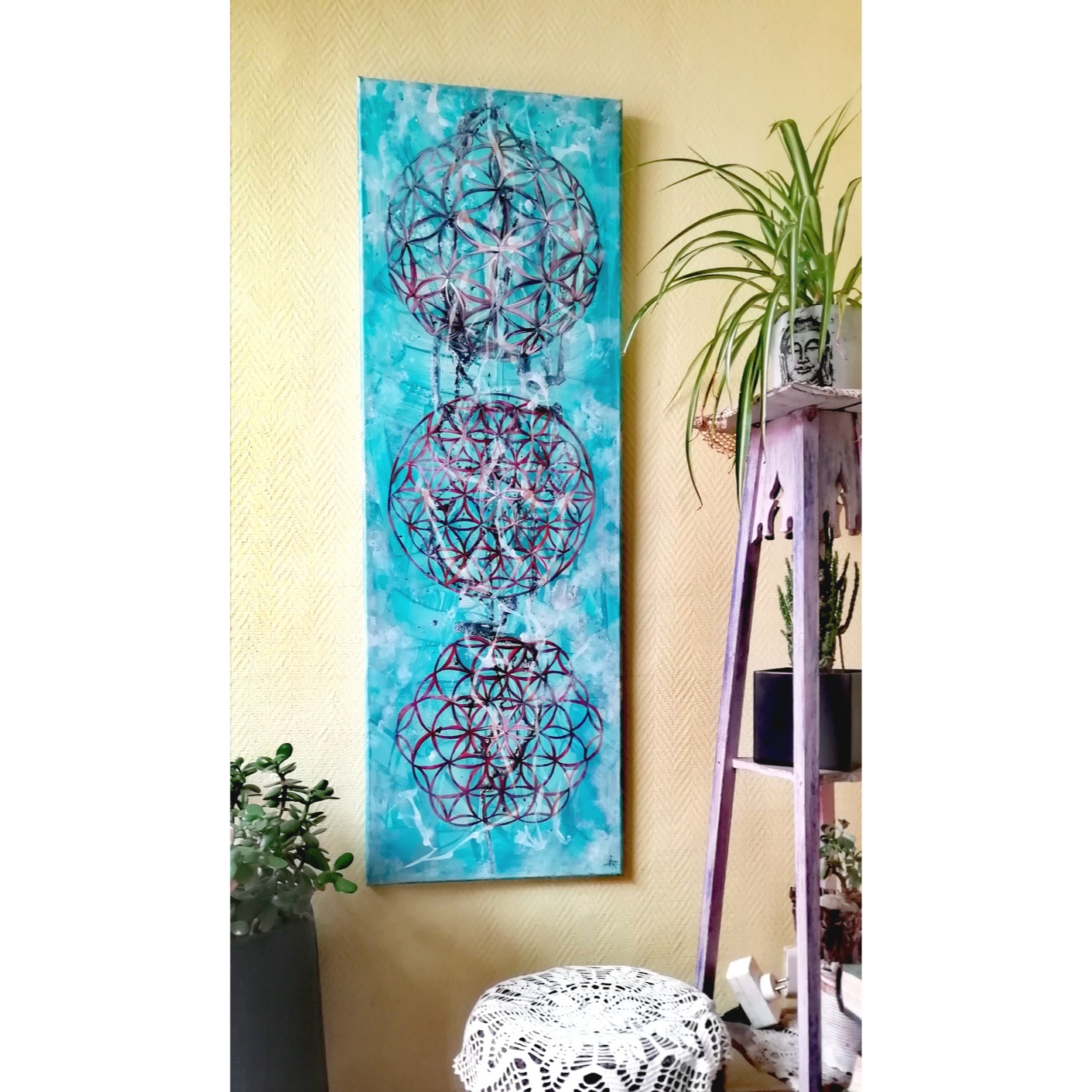 By - izaOeuvresAdmin Les 3 Fleurs (Trinité) : « Corps, Âme et Esprit dansent ensemble dans l’unité. »Les 3 Fleurs - Acrylique sur toile - 120 / 40 cm